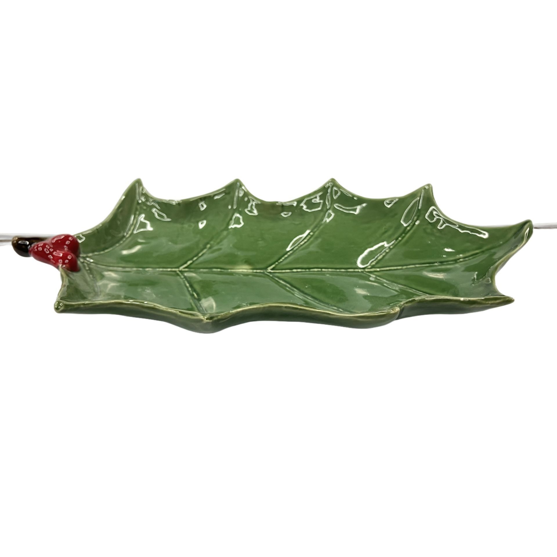 Green Holly Leaf Ceramic and Berry Serving/ Cookie Dish