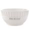 Bring some warmth into the home with the Hestia bowl. This simple yet stylish bowl makes a charming addition to any kitchen or dining table. Crafted from crisp white dolomite, the smooth glazed finish allows for easy cleaning while the slightly curved sides are pleasing to hold. Decorated with a playful 'Bowl Me Over' slogan that brings a touch of humour to mealtimes, it's the perfect bowl for serving up soups, salads, cereals and more. Generously sized to share hearty portions with friends and family. An affordable way to add a little extra style to everyday dining.