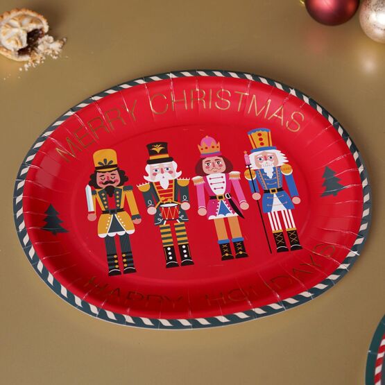 The MULTI 12 Set of 6 Nutcracker Christmas Oval Paper Plates - Happy seasonals brings festive charm to seasonal gatherings.