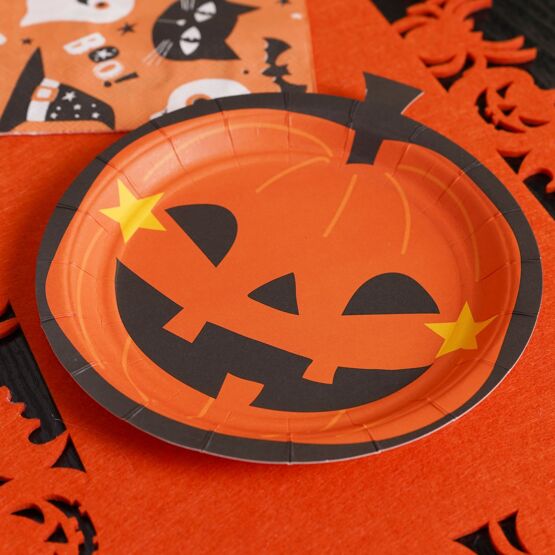 This **multi 12** set of 6 pumpkin paper plates 20.5cm offers a stylish nod to the spooky season, blending character with seasonal charm. With its unique character and refined detailing, it serves as an appealing seasonal highlight. Perfect for adding personality and character to a table setting throughout the spooky season.