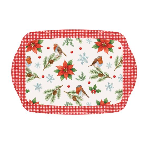 **MULTI 6** Poinsetta & Berry Melamine Tray 23cm x 16cm
