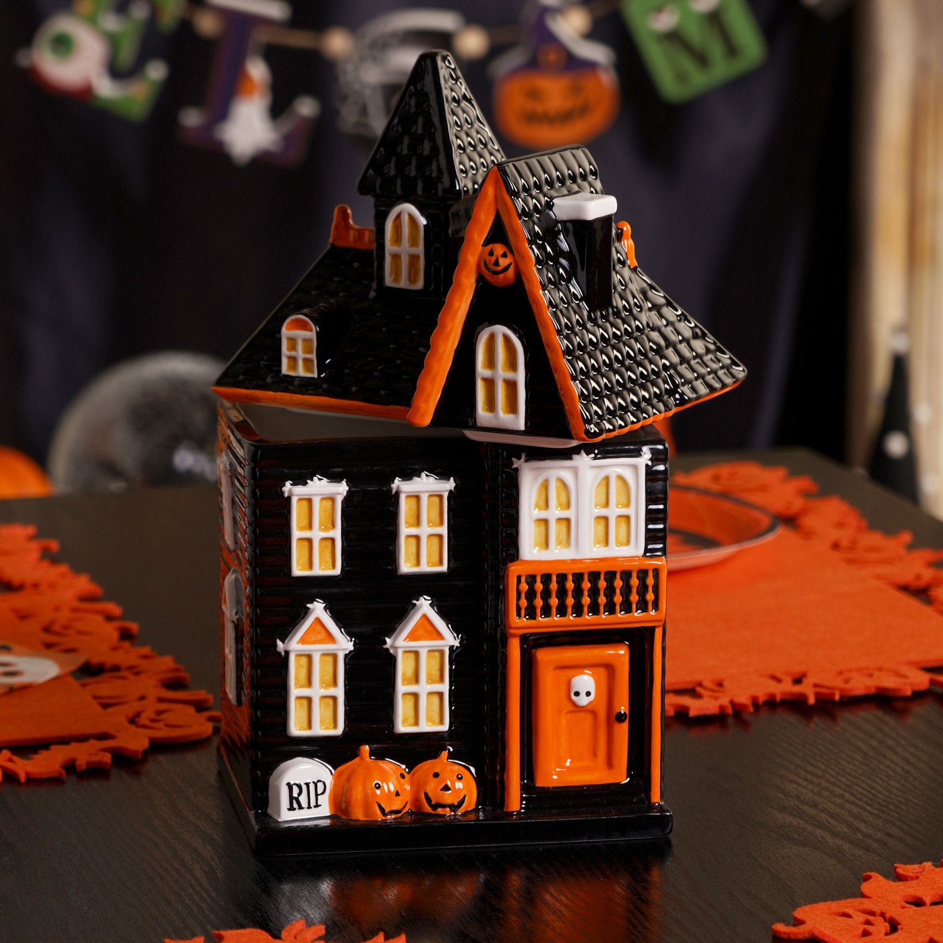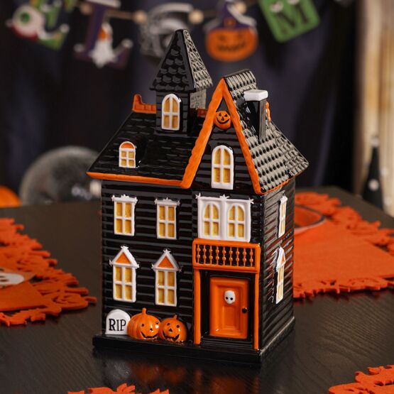 Introduce a subtle sense of Halloween magic with this 11" ceramic haunted house sweet jar, crafted with thoughtful detail. The design showcases a harmonious mix of Halloween motifs and polished craftsmanship. Ideal for enhancing autumn displays or bringing a seasonal accent into the home.