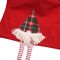 The long, rectangular red cotton table runner showcases a unique gonk design with 3D legs and beard. It is completed by a vintage finish.