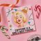 The image features a retro-style illustration of a woman with blonde hair and red lips, surrounded by stars against a pink background. Presented in a window box, this ceramic coaster adds a touch of vintage charm and seasonal cheer to any home.