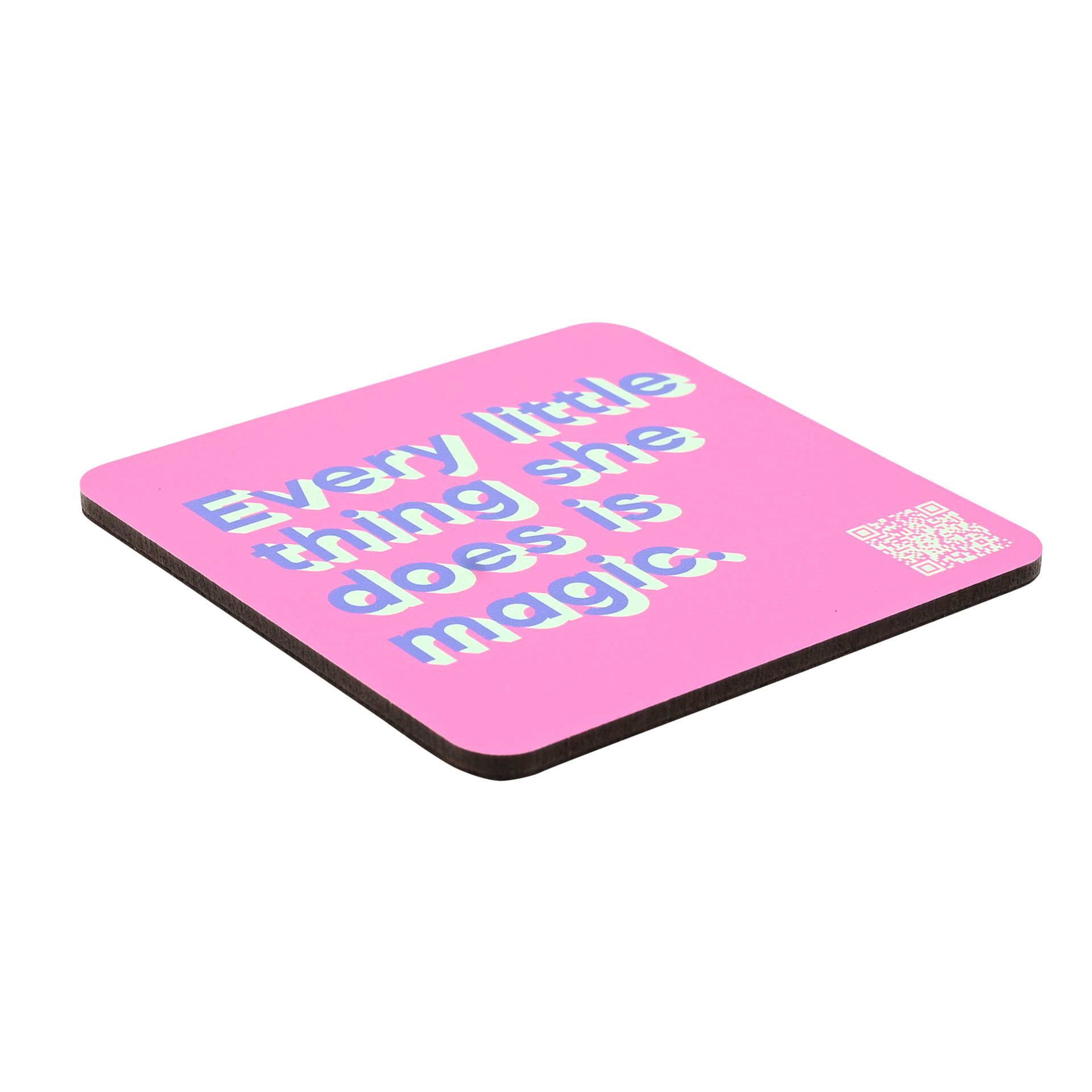This 9.5cm coated hardboard and cork coaster protects surfaces while doubling as a conversation starter. A QR code lets you scan and hear the track instantly.