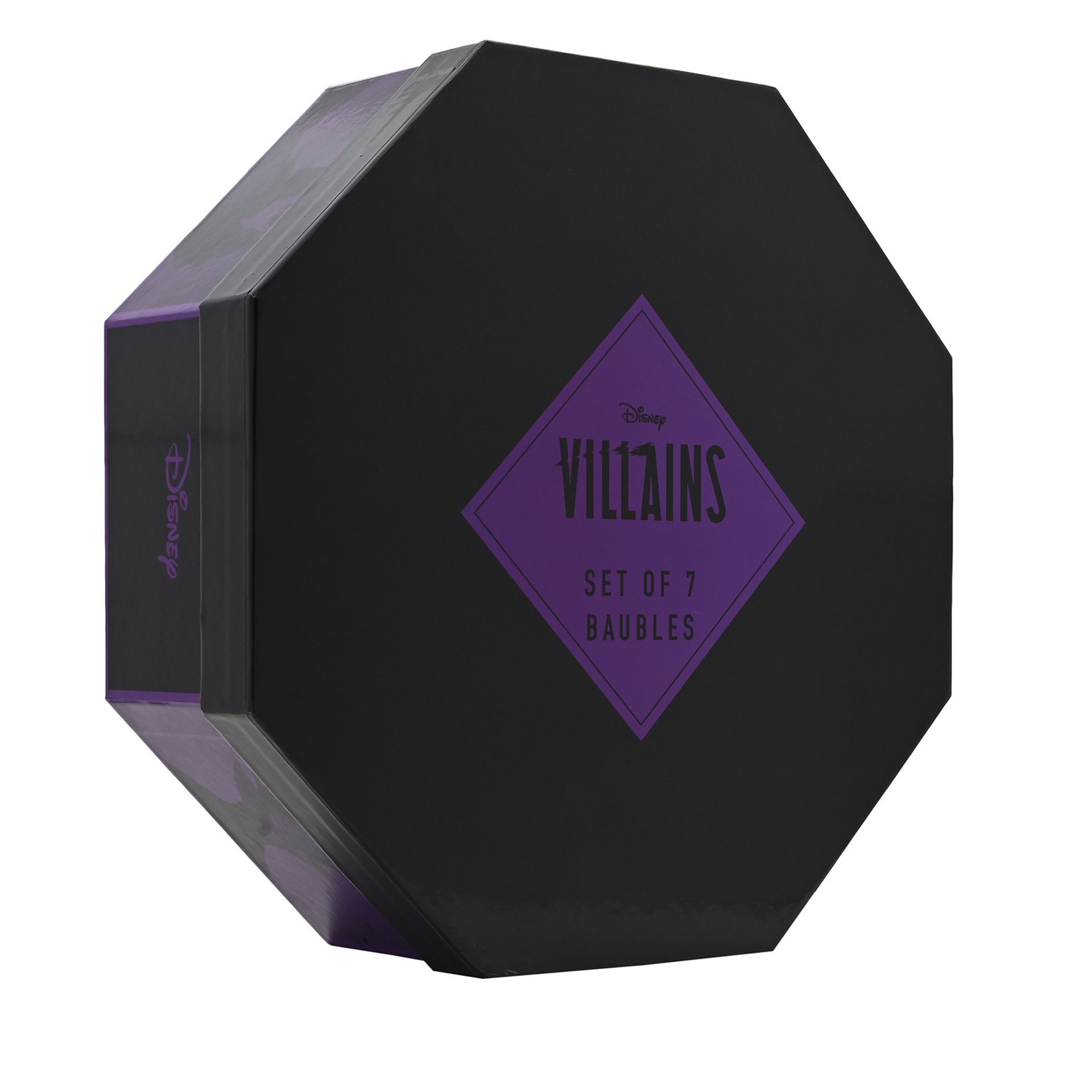 Make Christmas trees a little more wicked with this Disney Villains festive bauble set. Featuring 7 glass baubles showcasing iconic baddies like Maleficent, Ursula, Cruella de Vil, and more, this collection adds a touch of villainy to festive decor. Each ornament features a character's face with their signature colours. These baubles are the perfect size for hanging on branches. An ideal purchase for Disney fans who want to add some mischief to the season with this must-have bauble set.
