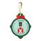A green ornament with a red bow, featuring a toy soldier figure and the text "Grandad".