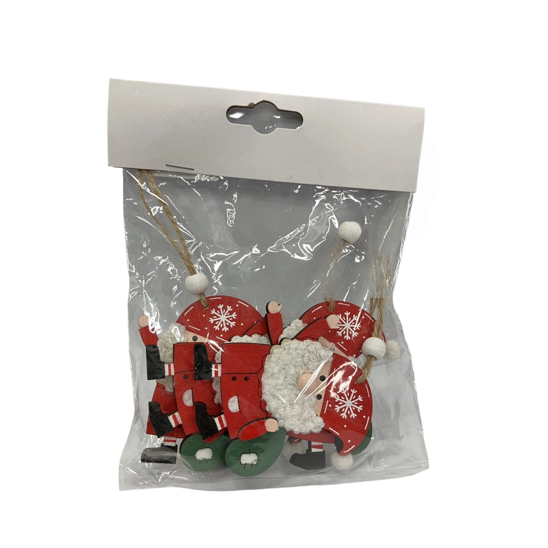 Each decoration features a charming Santa Claus figurine, adorned with crisp snowflake motifs. Presented in a sealed plastic bag, these pieces blend nostalgic character with a fresh, cheerful aesthetic.