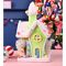 Candy-bright greens meet punchy pink and red accents, with a tall pointed roof and bold stripe and spot patterns, finished with playful trims. Tiny pom-pom details dance around the base, dialling up the kitsch and the Christmas cheer.