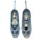 Two ceramic ornaments feature delicate blue patterns and interior scenes of a Nutcracker soldier and ballerina. Ideal for tree décor or gifting, they offer a sophisticated nod to seasonal nostalgia.