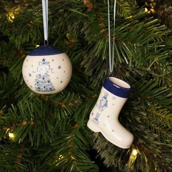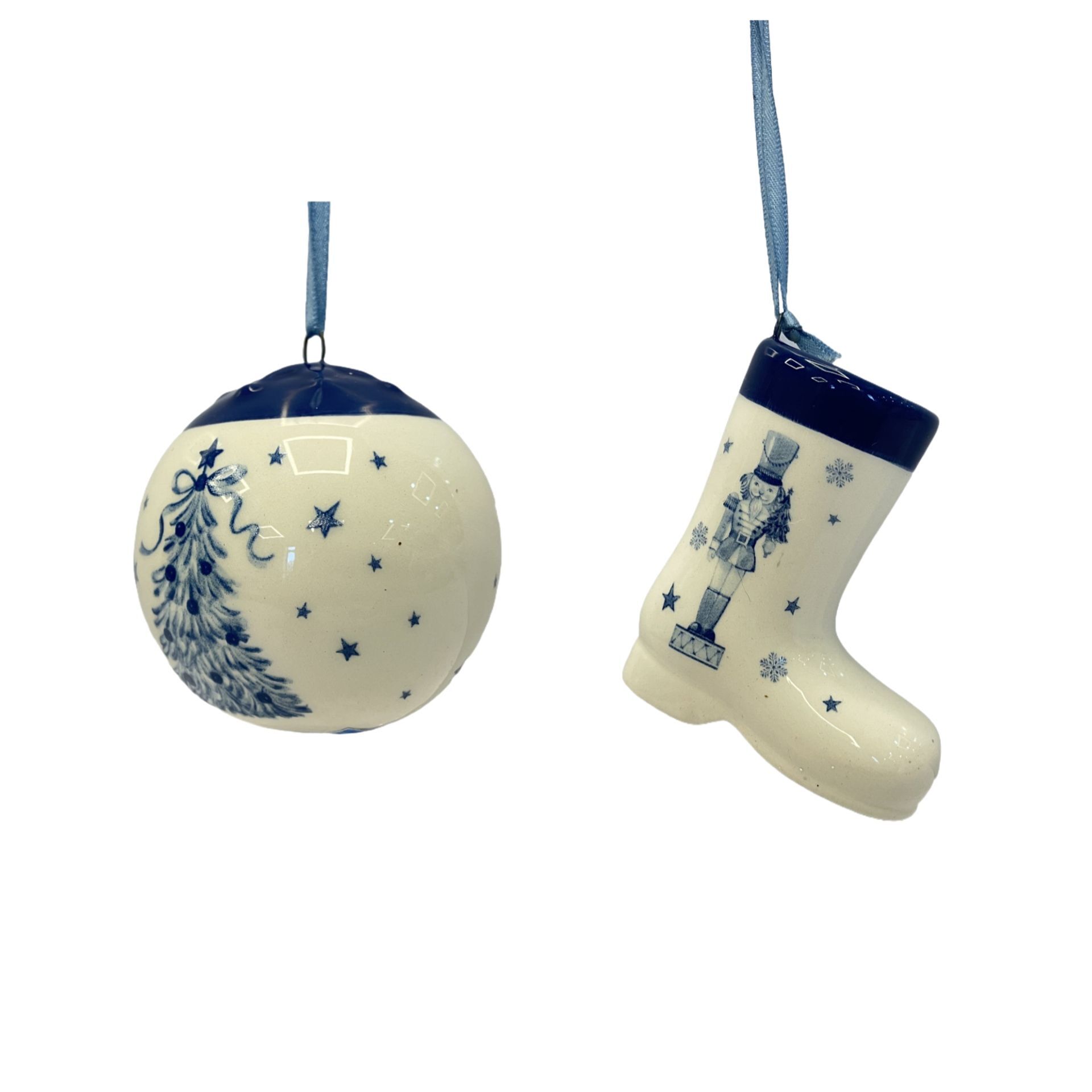 **ASTD MULTI 2** Boot and Bauble Ornaments with Blue Dove Design