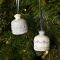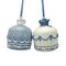 Two ceramic ornaments with intricate blue-and-white patterns hang from soft velvet ribbons, echoing the charm of decorative goodies.
