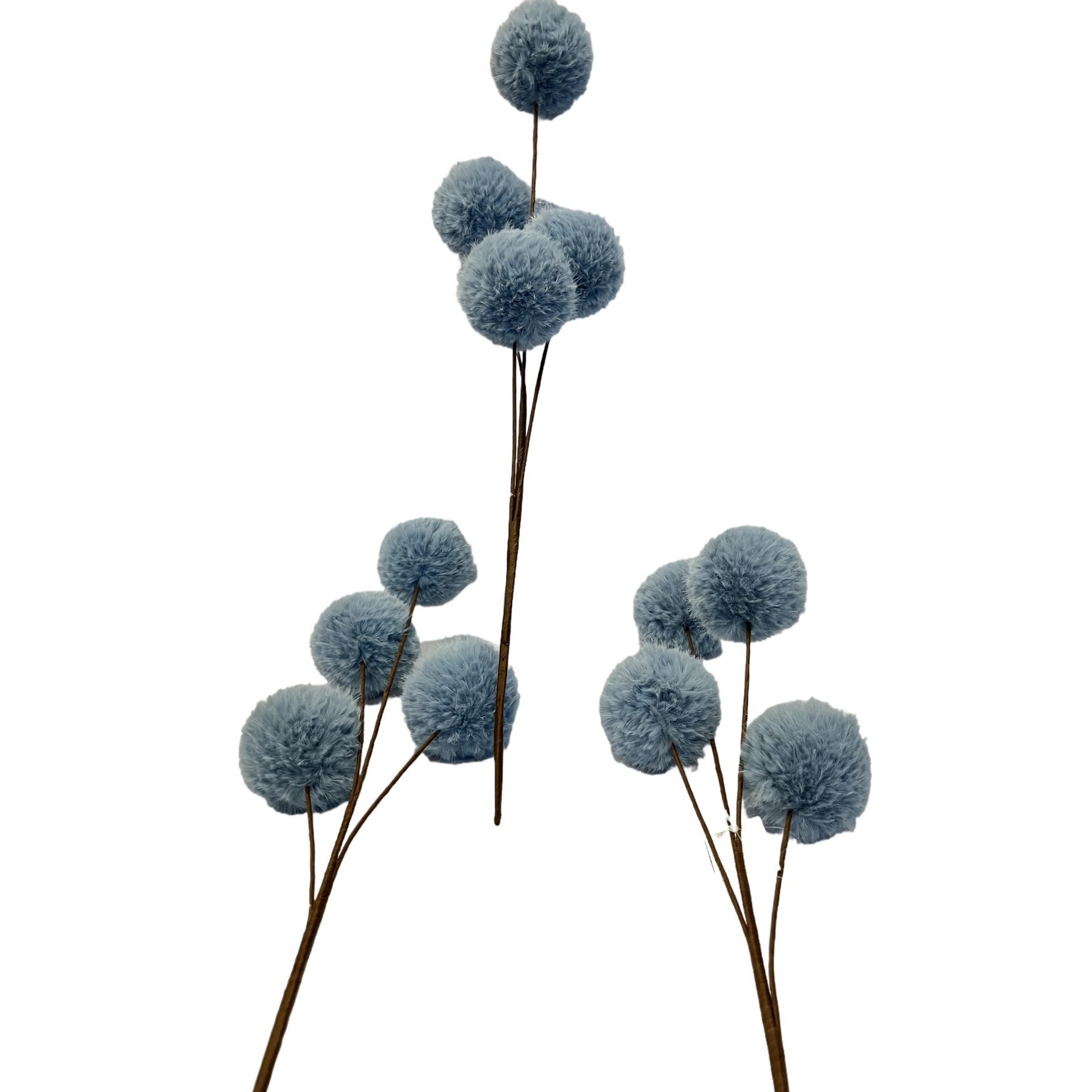 Featuring four velvety pom poms in muted blue tones, this piece offers a simple, tactile accent for wreaths, vases, and table arrangements. A versatile detail that layers beautifully with metallics or greenery.