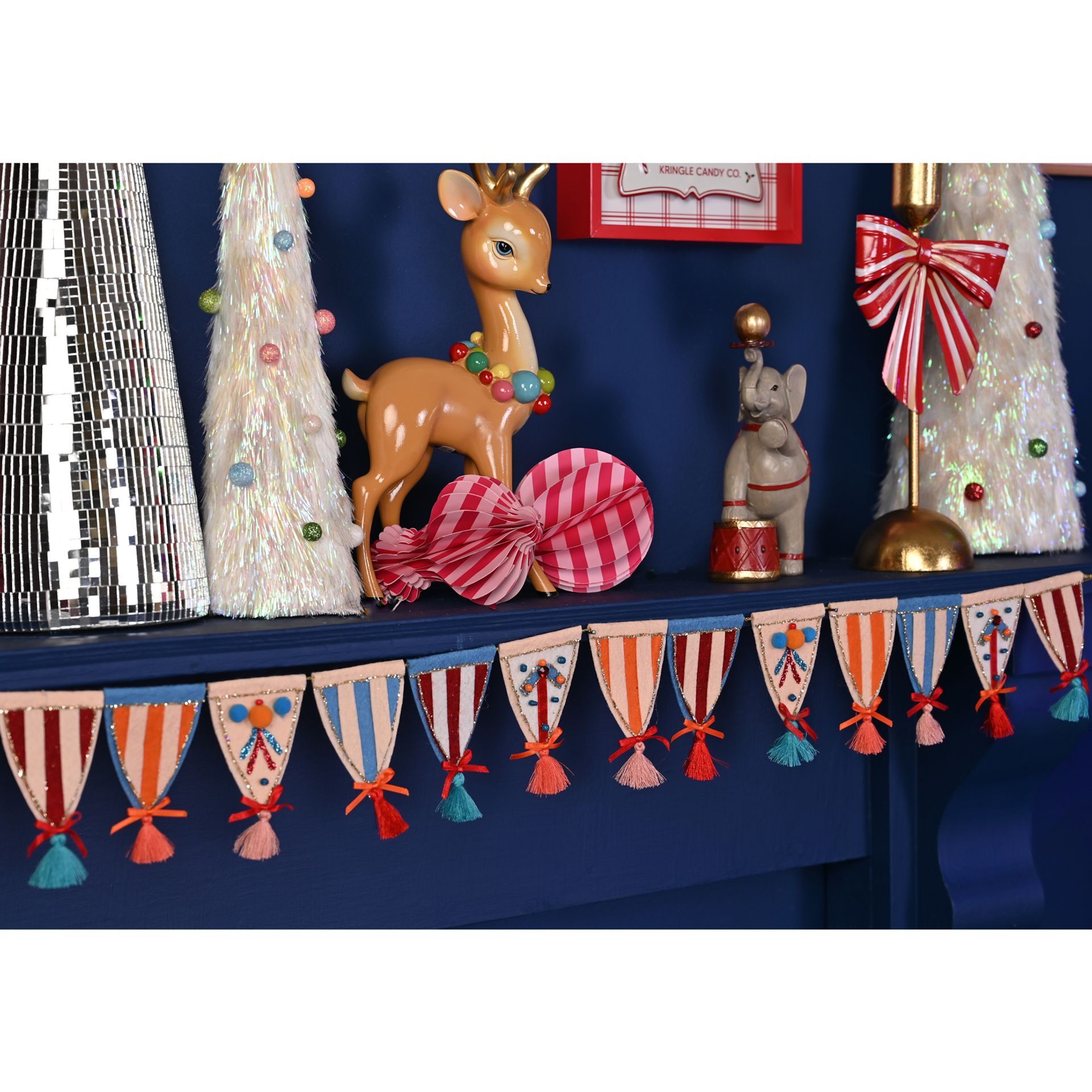 The Circus Fabric Bunting with Tassels - 80cm is a vibrant garland embodying Whimsical Wonderland's circus-meets-Christmas vibe.