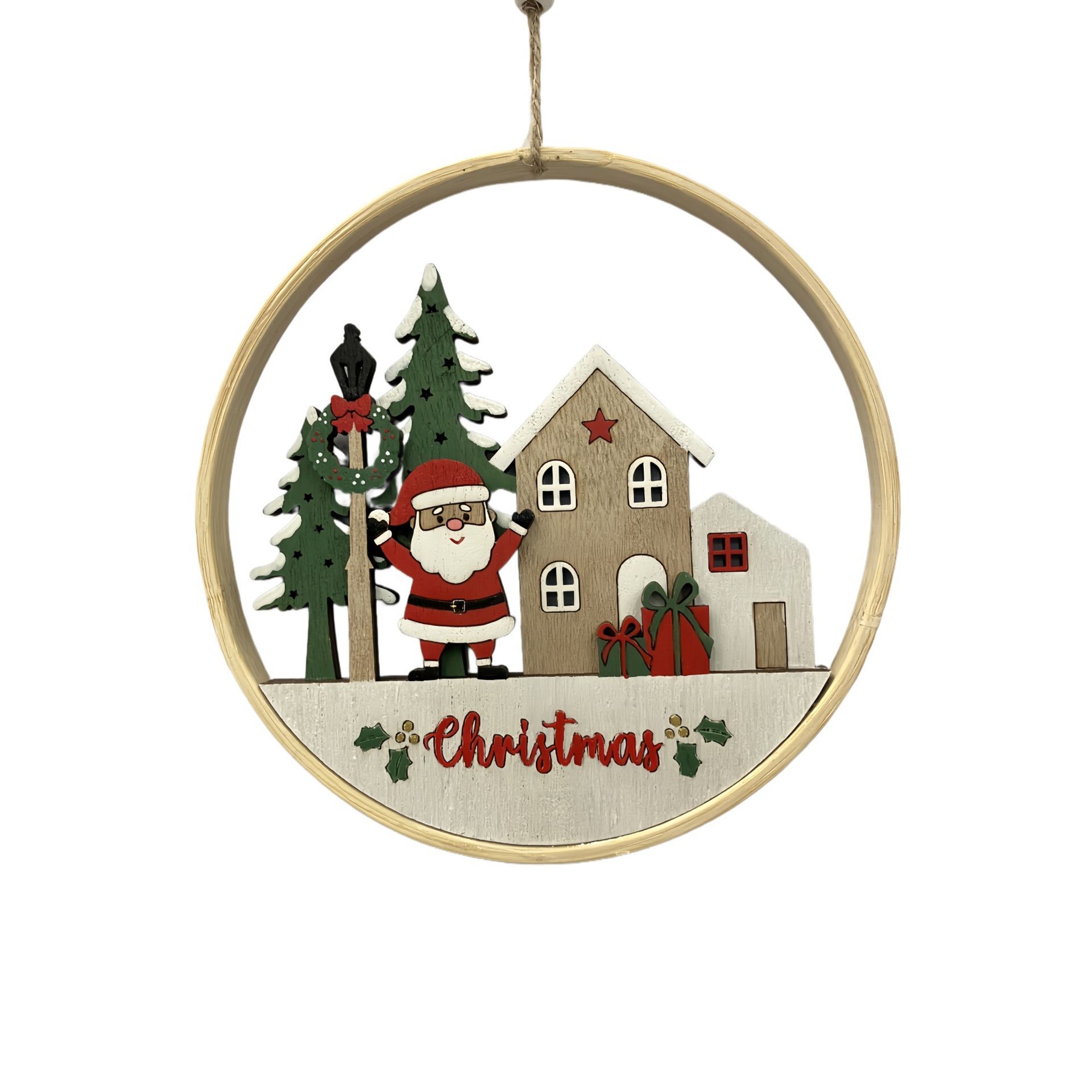 **MULTI 12** Round Hanging Plaque Santa Scene