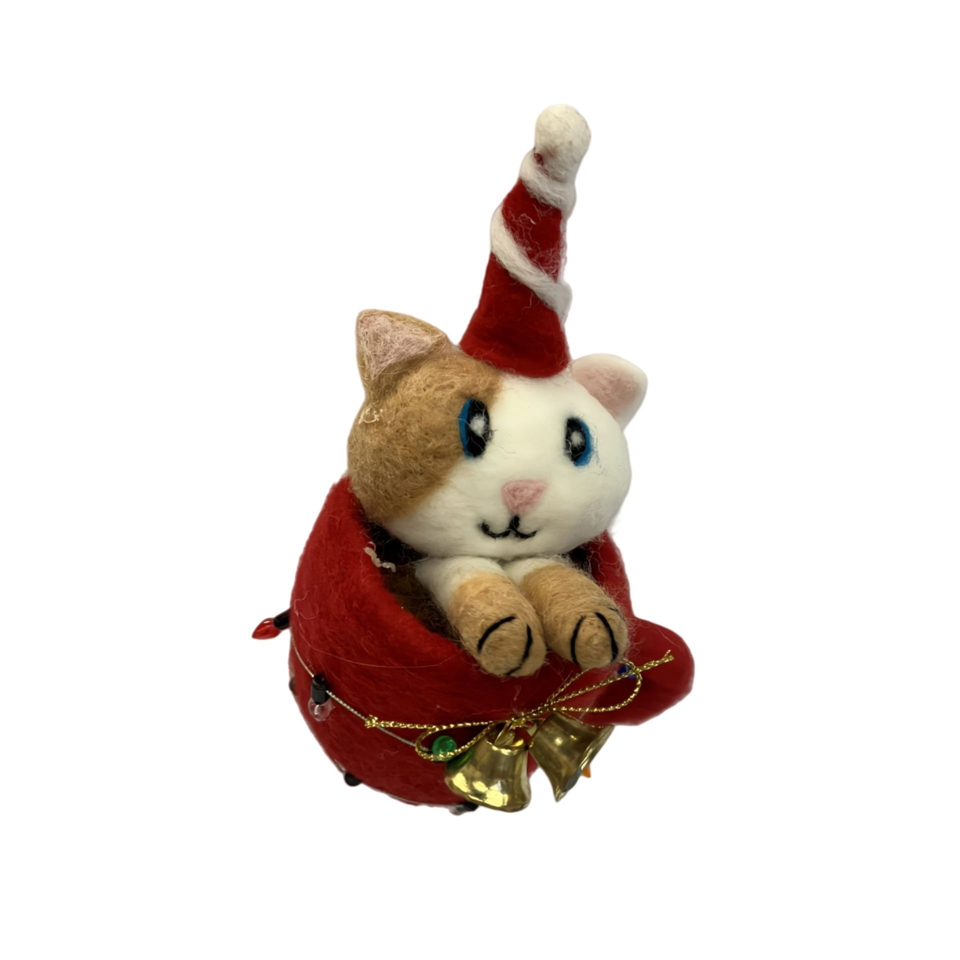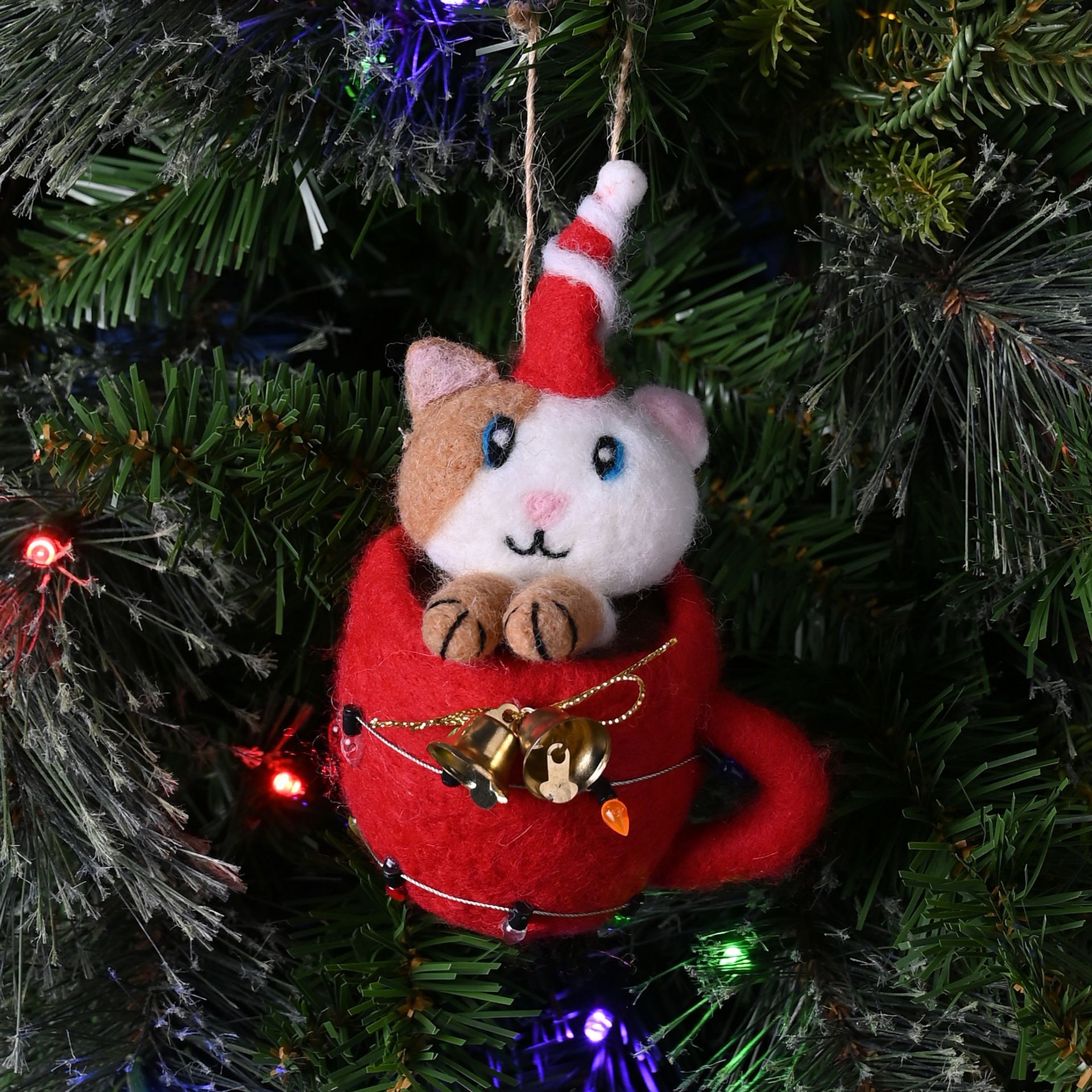 The **MULTI 6** Hanging Felt Ornament - Cat In A Cocoa Cup is a playful felt character brimming with festive charm.