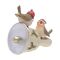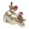 The gold & white resin figurine showcases a pair of festive robins perched upon a bell. It is completed by a metallic effect glitter finish.
