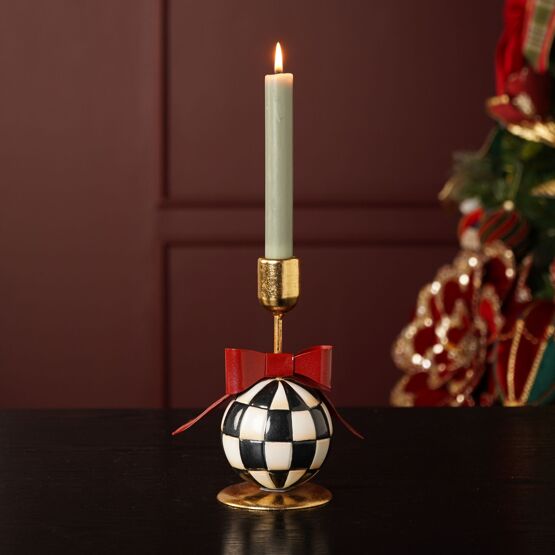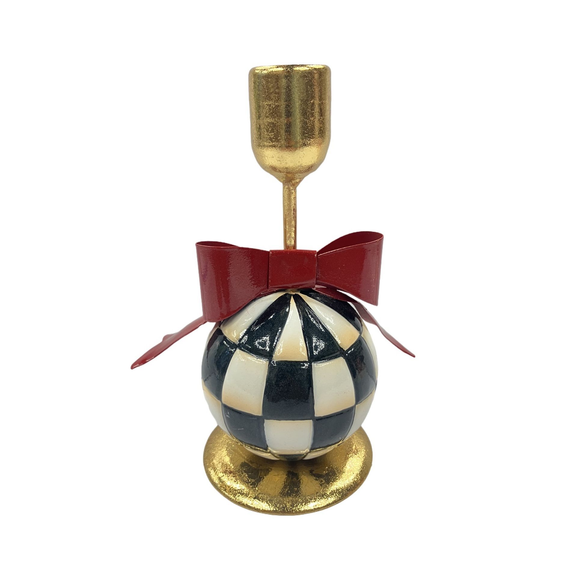 Regal Tidings Black & White Chequered Candle Holder 7.25"