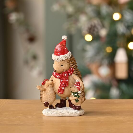 Add a touch of woodland nostalgia to festive displays with the Resin Christmas Hedgehog and 2 Hoglets Figurine.