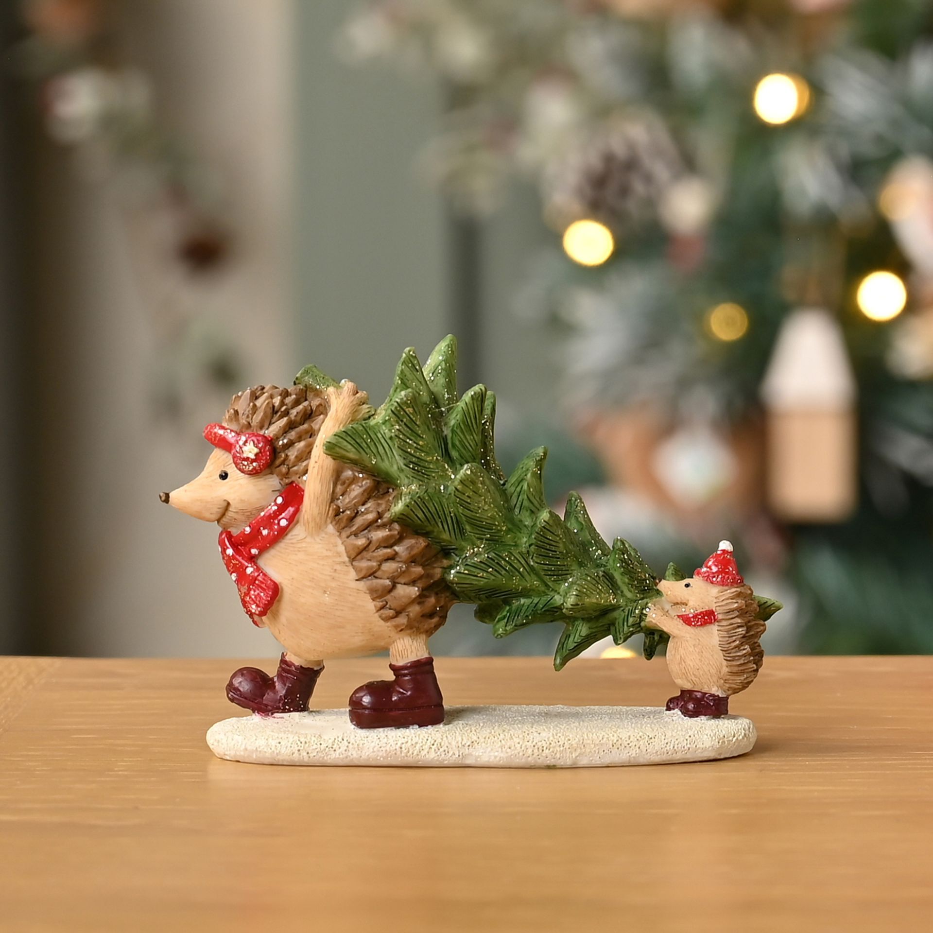 Resin Christmas Hedgehog Pulling Christmas Tree- 12cm Wide