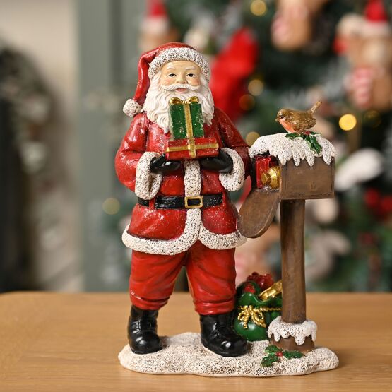Celebrate the timeless charm of Christmas traditions with the Resin Santa and Postbox Figurine.