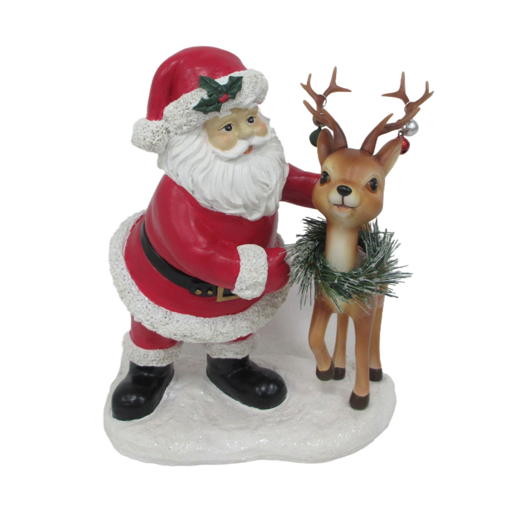 The Santa & Reindeer Figurine captures festive charm with a playful twist for contemporary Christmas decor.