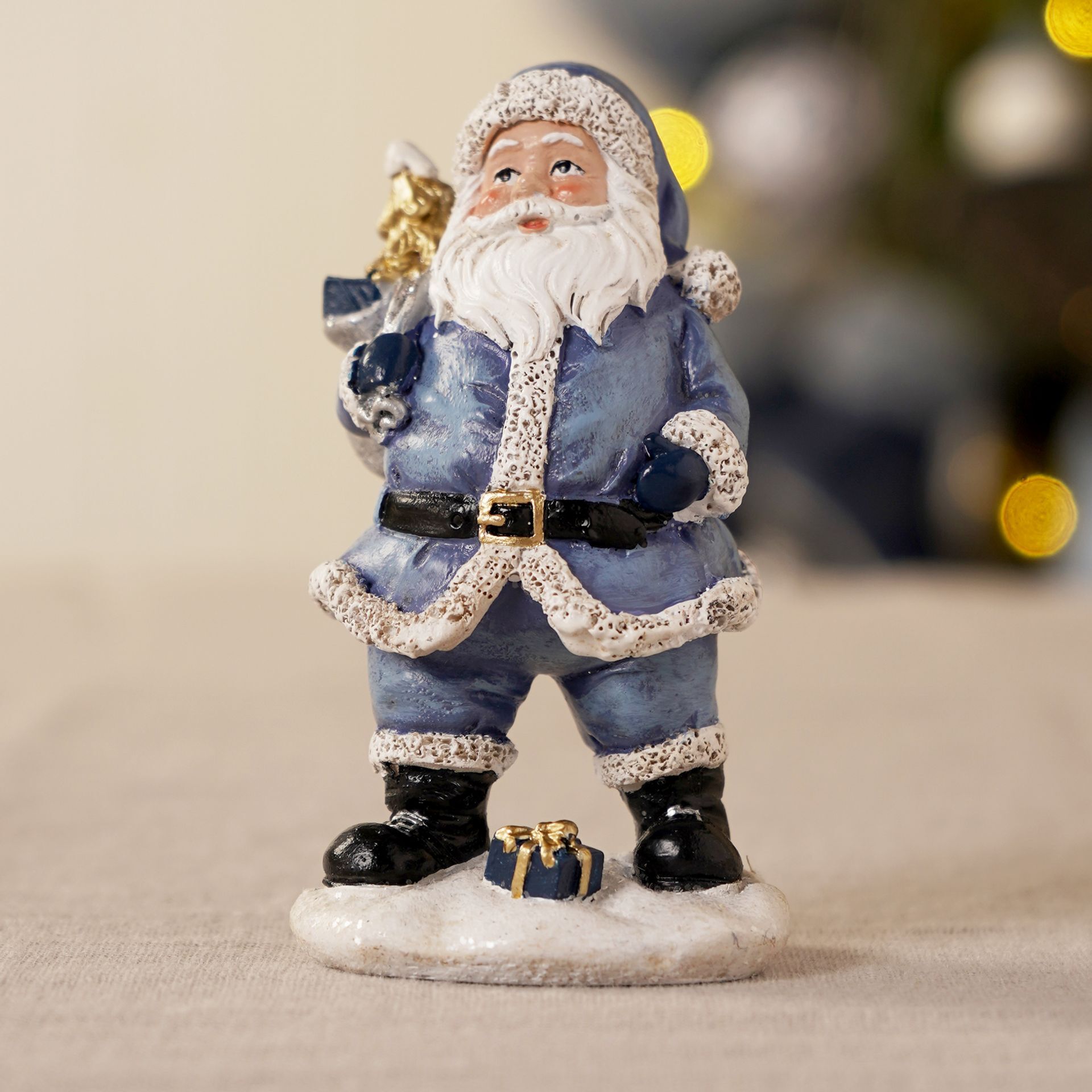 The Santa with Sack Figurine in Blue Colours offers a classic festive accent with a refined twist.