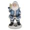 This detailed figurine features Santa dressed in rich blue with white trim, carrying a sack of gifts and a golden Christmas tree.