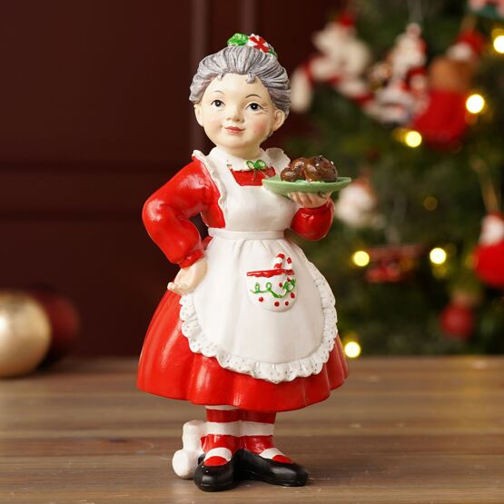 Standing Mrs Claus Figurine with Cookies 20cm