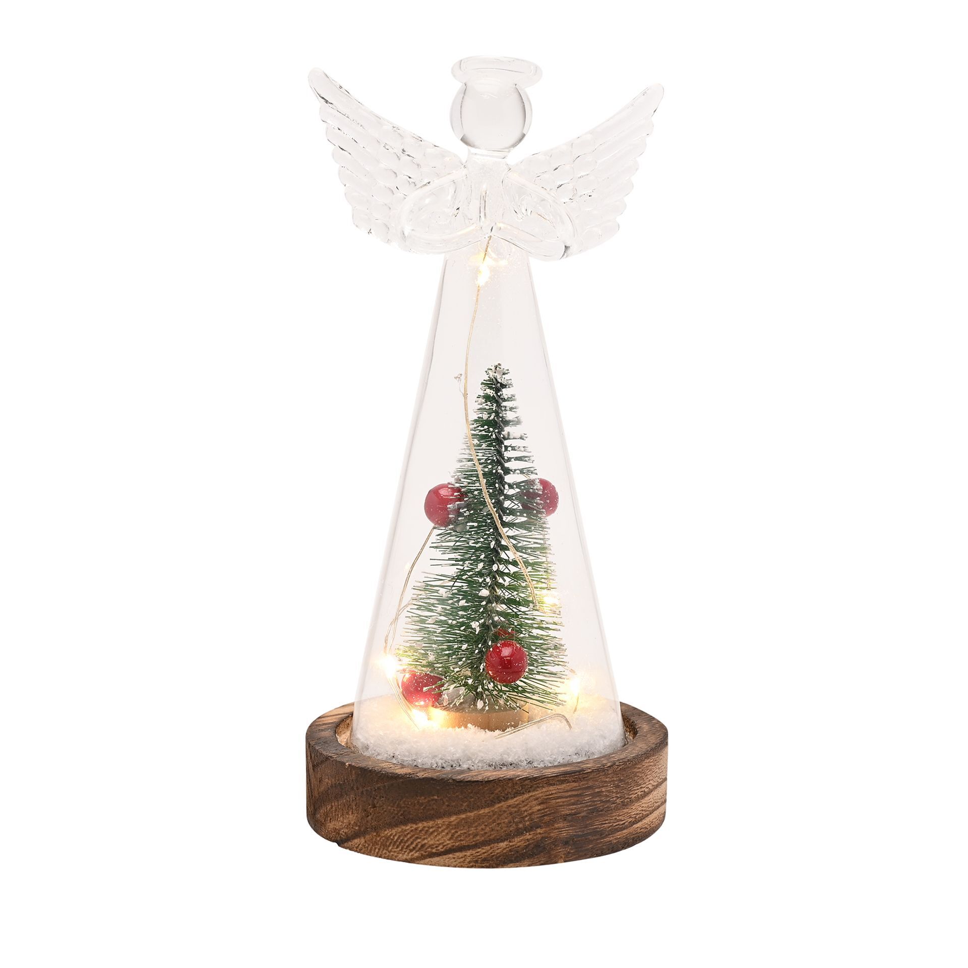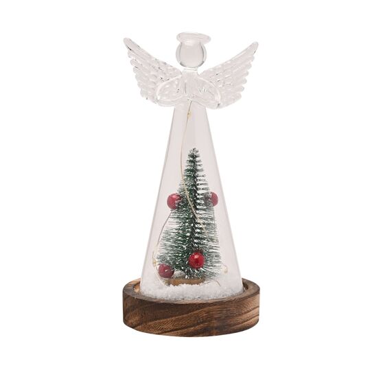 Our 'Glass Angels With Foliage And Berries - Large' is a delightful centrepiece that brings the magic of Christmas to any home.