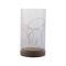 The glass cylindrical tube light sits upon a wooden base. Its internal LED lights shine brightly in the evening at home.