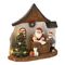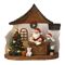 Enhance your festive season with our 'Regal Tidings Santa's Grotto Scene with LED'. The wooden cabin, featuring a Christmas tree, Santa, and two children, captures the magic of Christmas night.