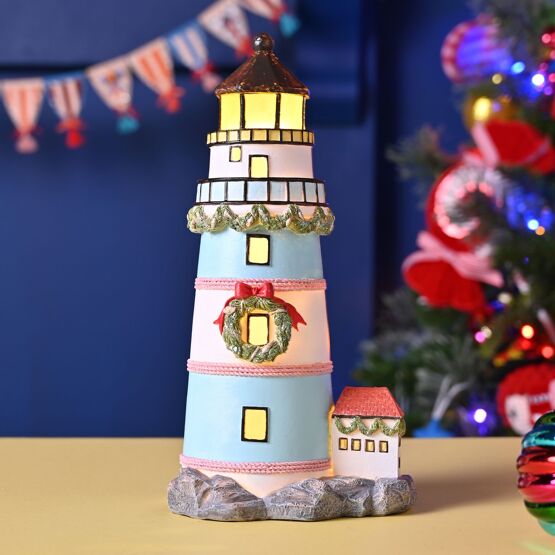 The Resin LED Light Up Christmas Lighthouse Decoration is a playful tabletop centrepiece with a twist.