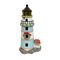 Crafted in resin, it features a multicoloured tower, a rocky base, and a small cottage set behind. Warm white LEDs glow through the windows and beacon, bringing circus-meets-Christmas sparkle to any display.