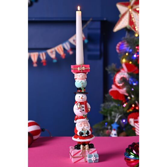 The Santa & Snowman Stack Candle Holder 12.25" is a playful statement from Whimsical Wonderland, celebrating stacked festive characters with bold personality.