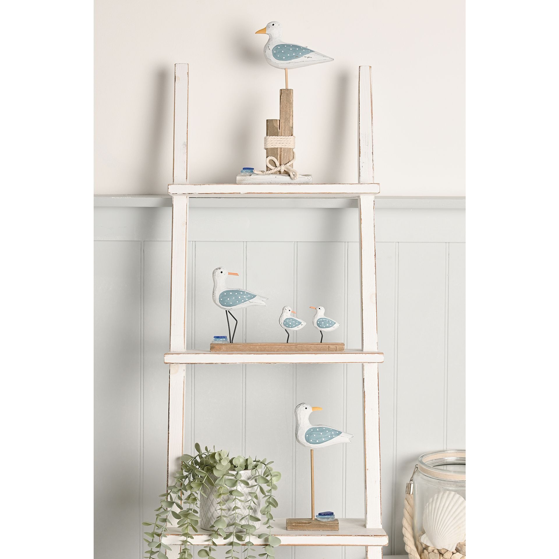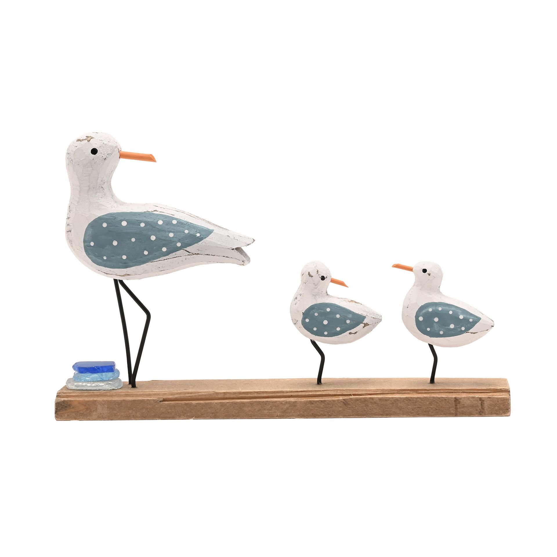 The Love Life By The Sea Driftwood with Sea Glass - Seagulls 24cm adds coastal charm to any space with its trio of wooden seagull figurines perched on a rustic driftwood-style plank.