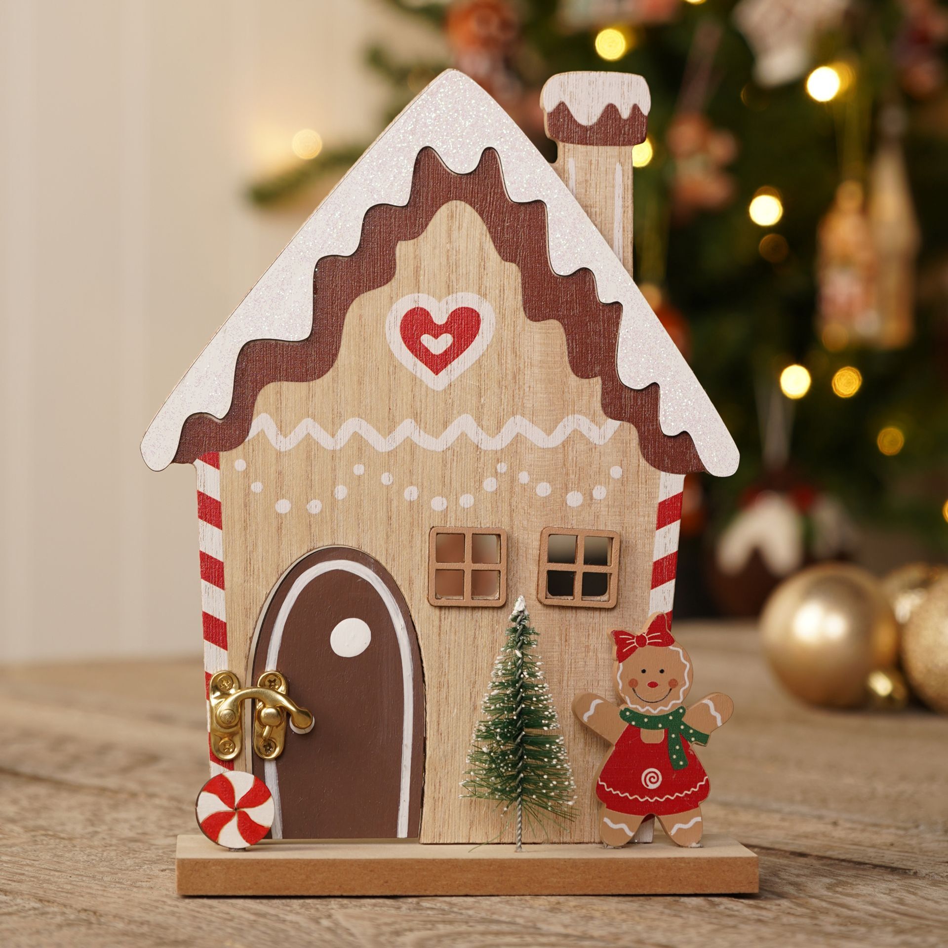 **MULTI 2** Light Up LED House Decoration with Gold Trim Door