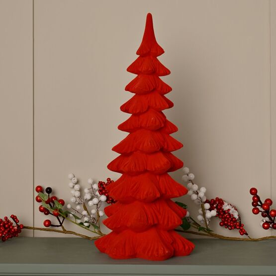 The Red Flocked Christmas Tree with Resin & Velvet provides bold colour in a tactile finish.
