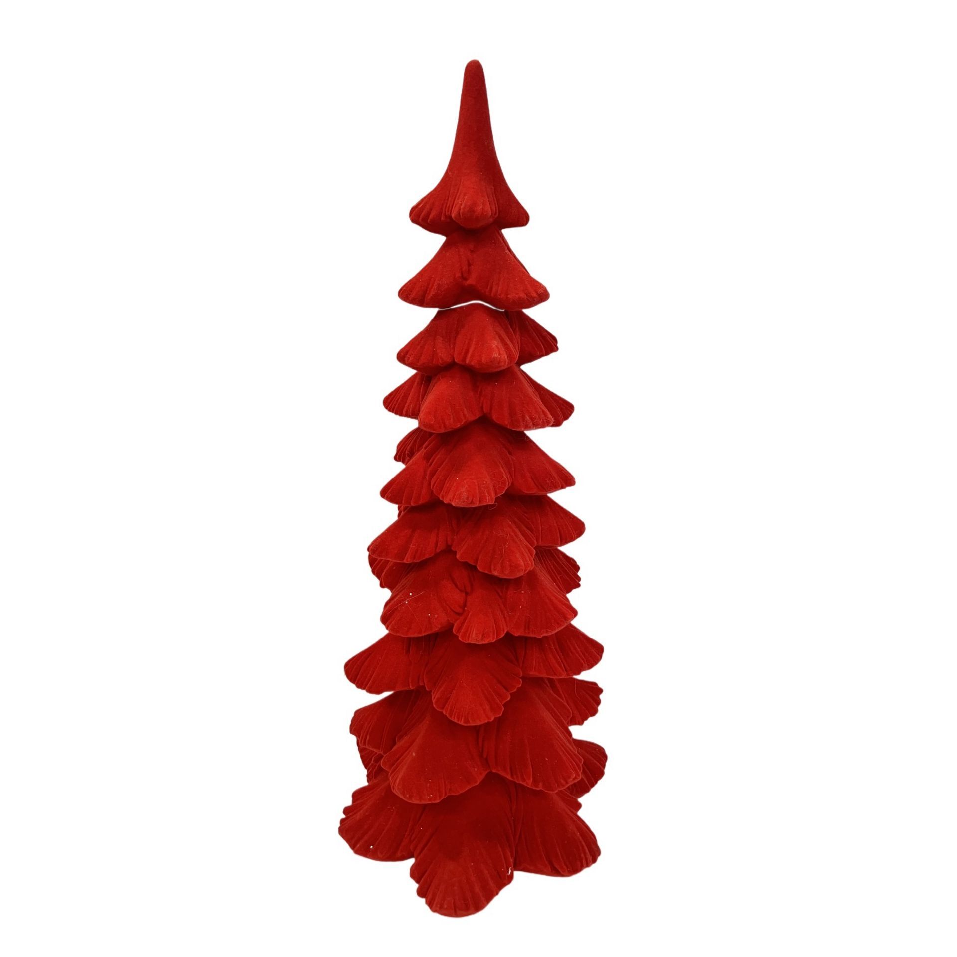 Red Flocked Christmas Tree with Resin & Velvet 43cm
