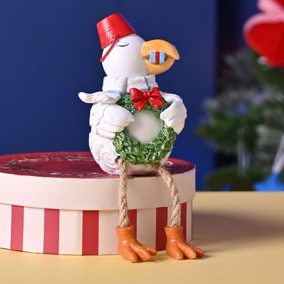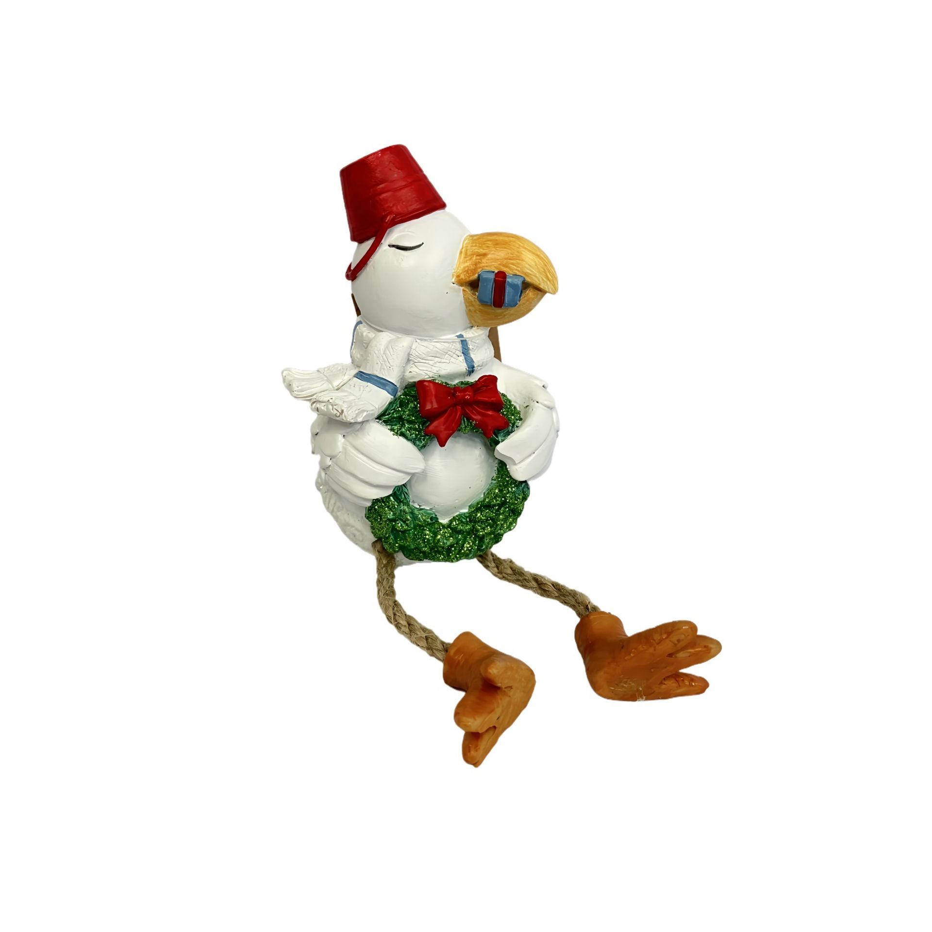 Crafted in resin, this cheeky seabird brings vibrant colour and playful pattern, its dangling legs poised to drape over a ledge for an easy perch. Christmas personality and a kitsch twist make it a fun highlight on shelves, mantelpieces, or party-ready displays.