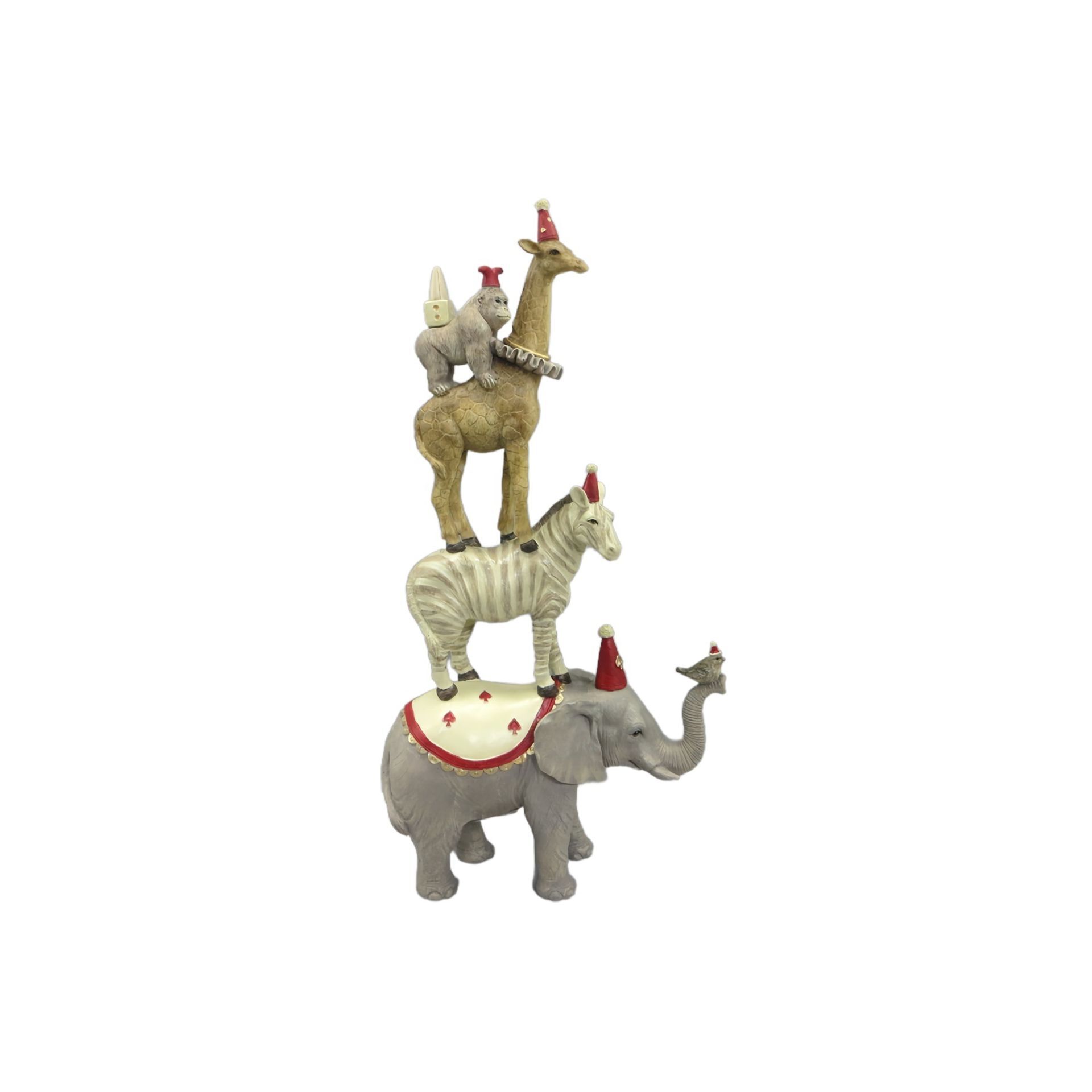 Resin Stacked Circus Animals- Elephant, Zebra, Giraffe and Monkey
