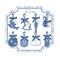 The Turtle Dove Stand comes with 48 Hanging Ornaments with Ribbon in 8 designs offering a charming centrepiece for festive decorating. The ornaments feature various winter-themed designs, all in a muted blue and white colour scheme.