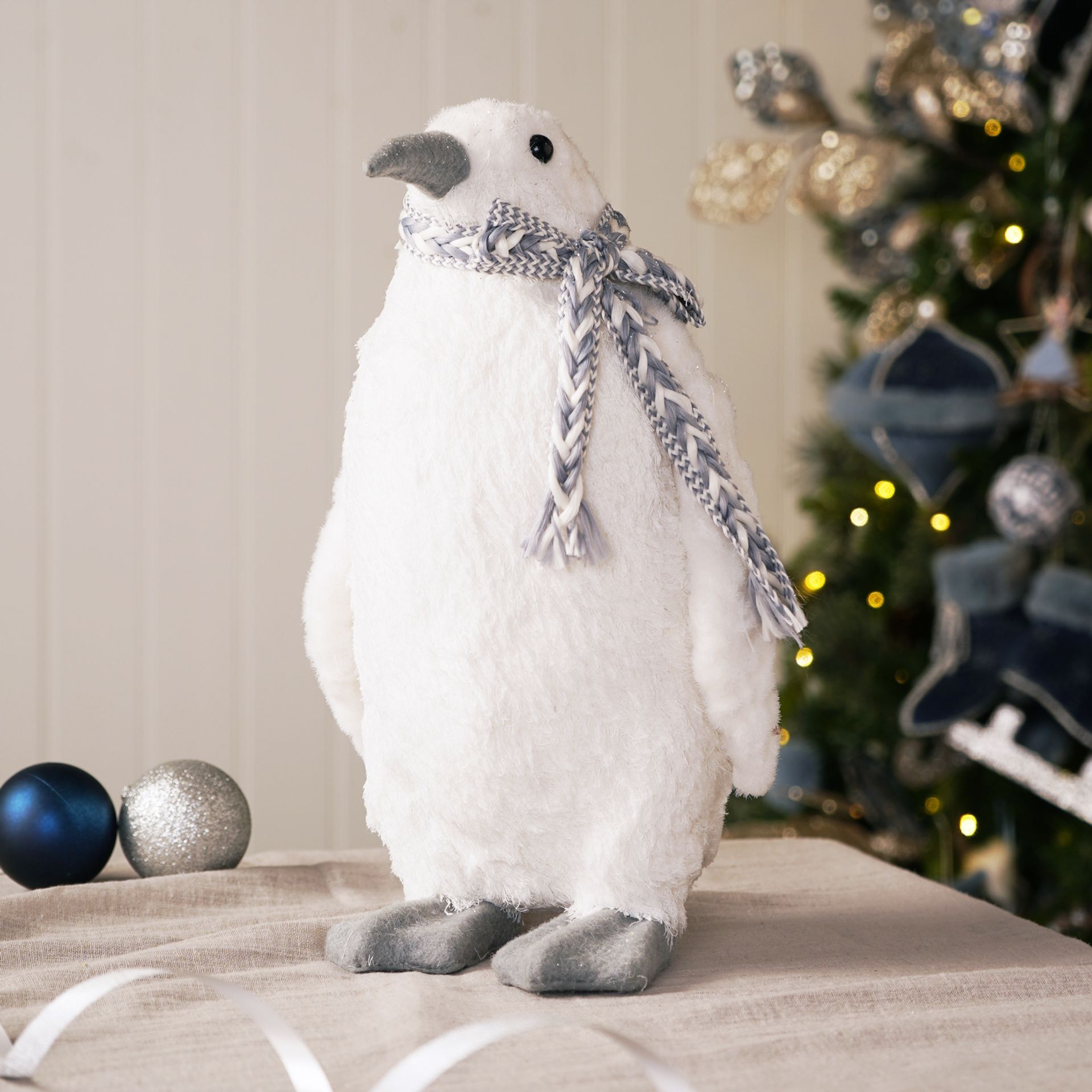 The White Penguin with Blue Scarf – 33cm adds a playful figure for festive edits.