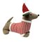 A plush toy dog doorstop in a red and white striped sweater and finished with a red polka dot hat, this door stop captures a sweet, whimsical spirit with gentle tactile appeal.