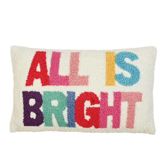 Add festive charm to your sofa or armchair with the 'All is Bright Hook Cushion'. Its jovial message and bright colours will bring a smile to anyone who sees it.