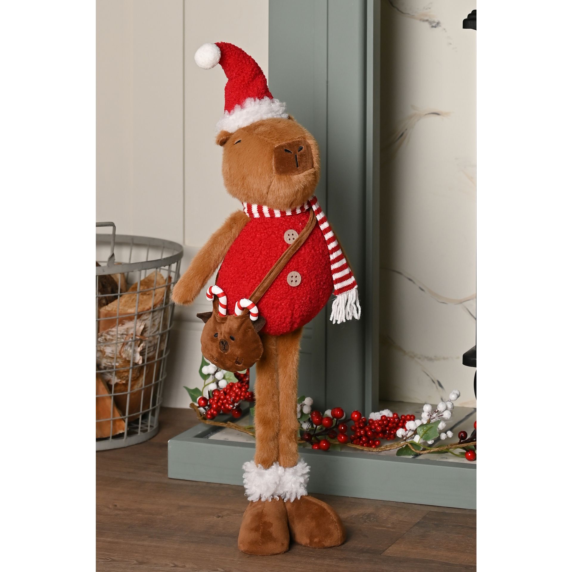 The Fabric Christmas Standing Tall Capybara with Candy Canes is a cheerful statement piece.