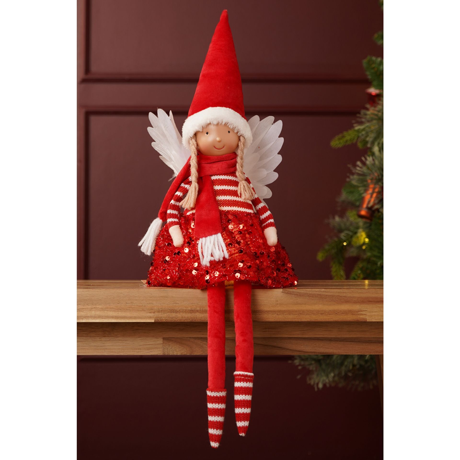 The LED Light Up Angel Sitting with Red Sequin Dress (Includes Try Me Button) offers a playful twist on classic Christmas decor.