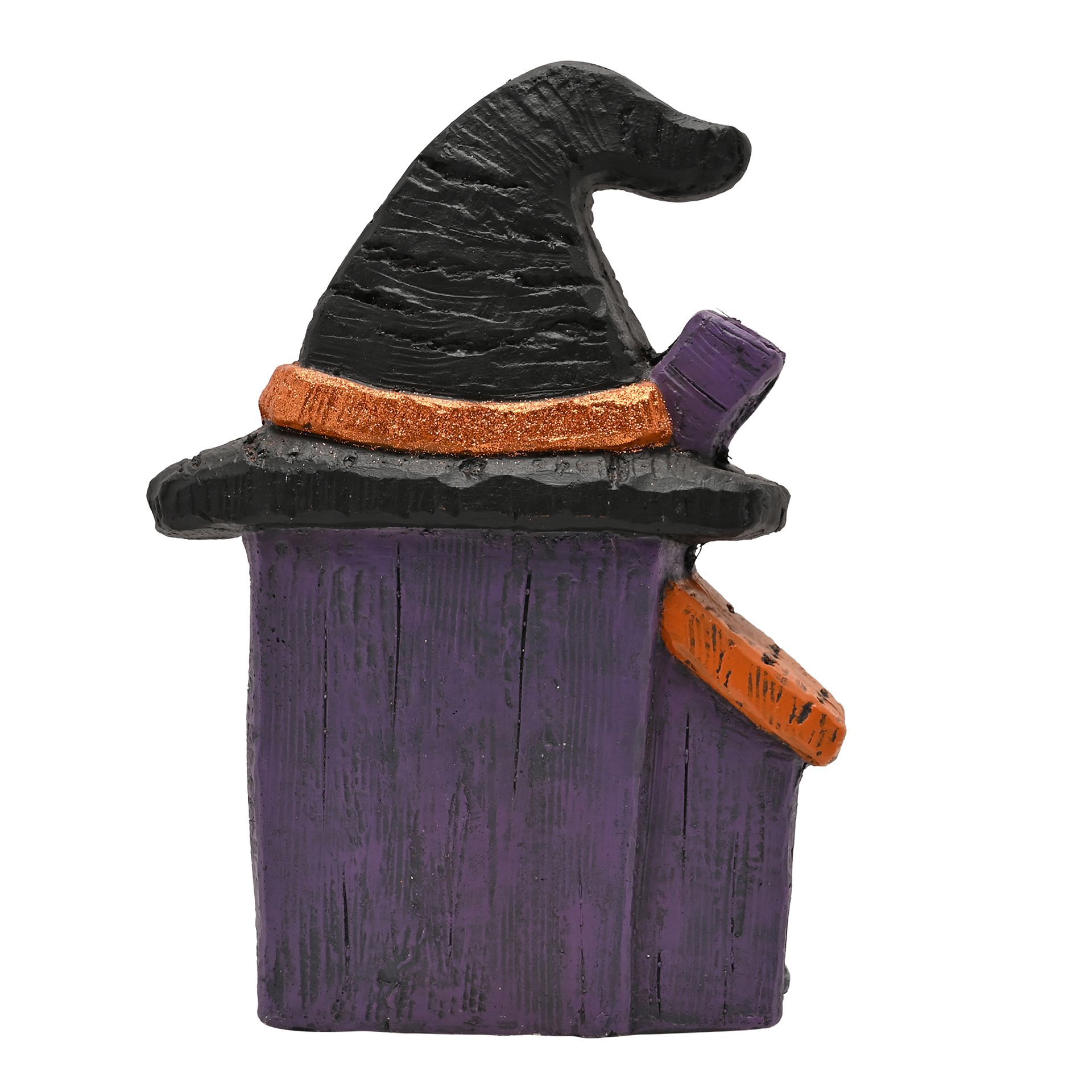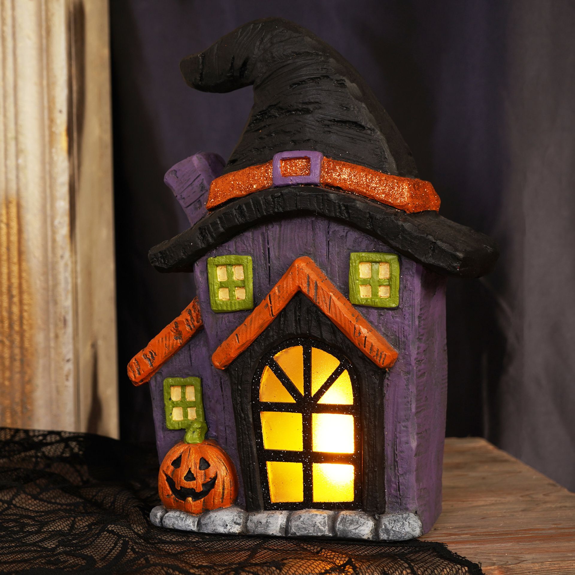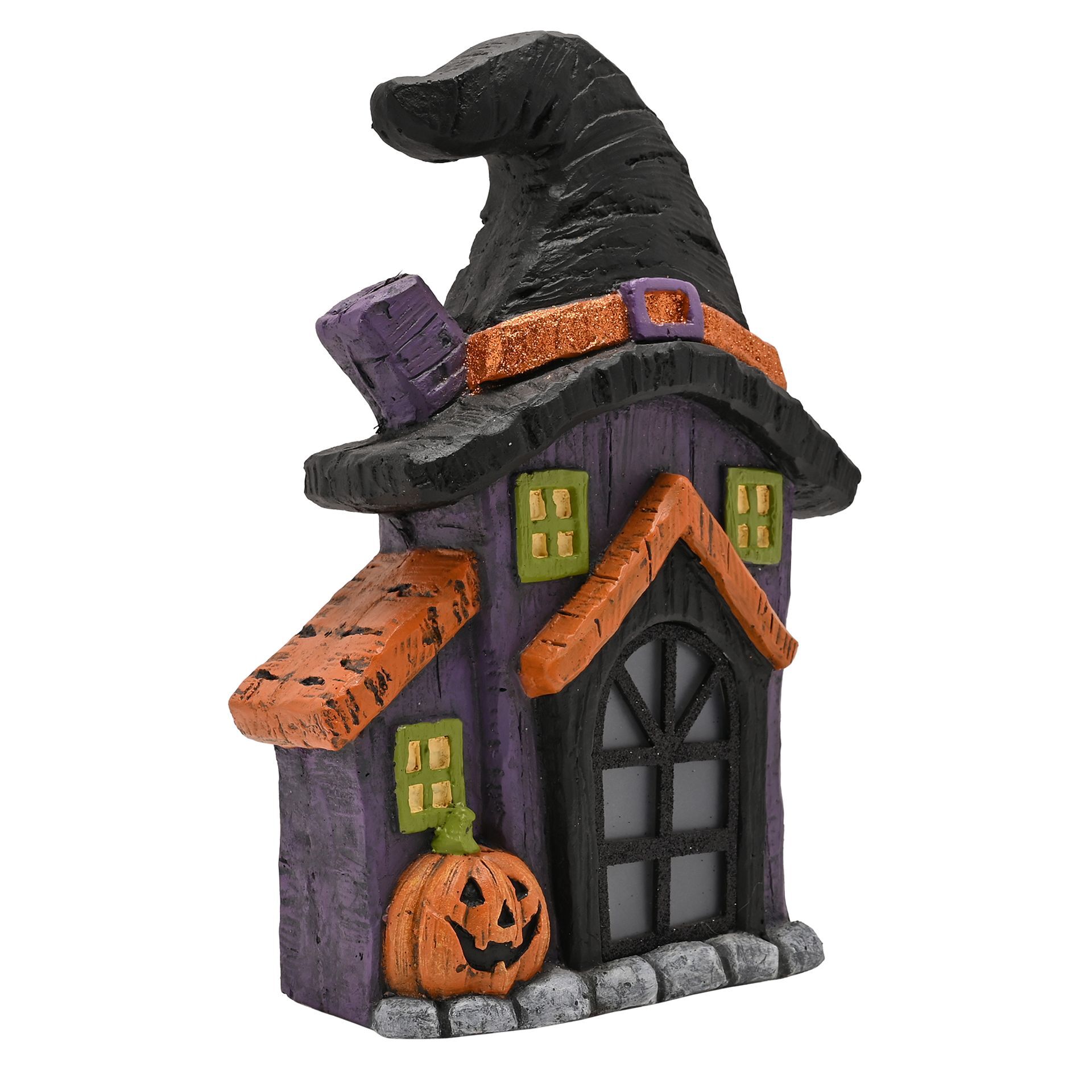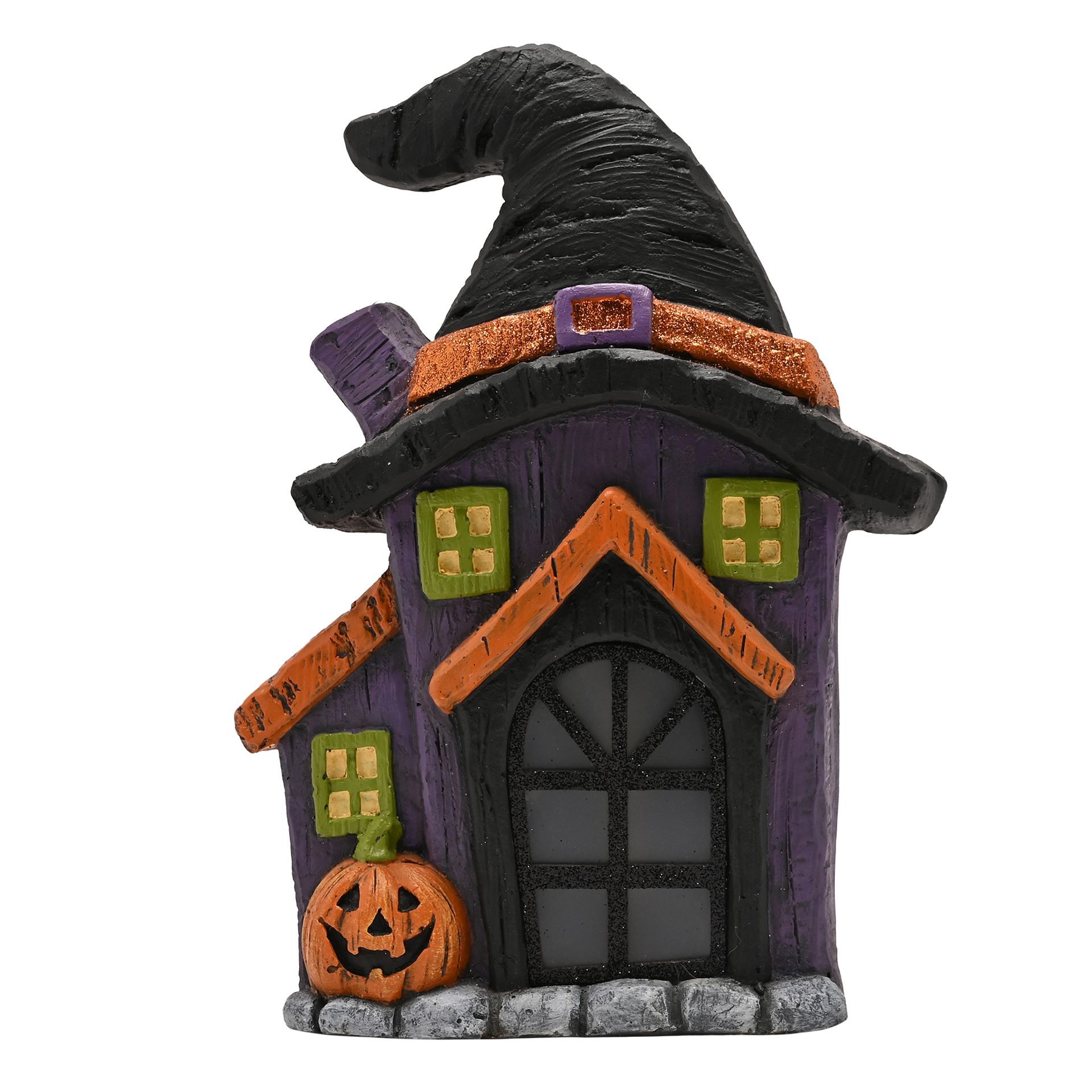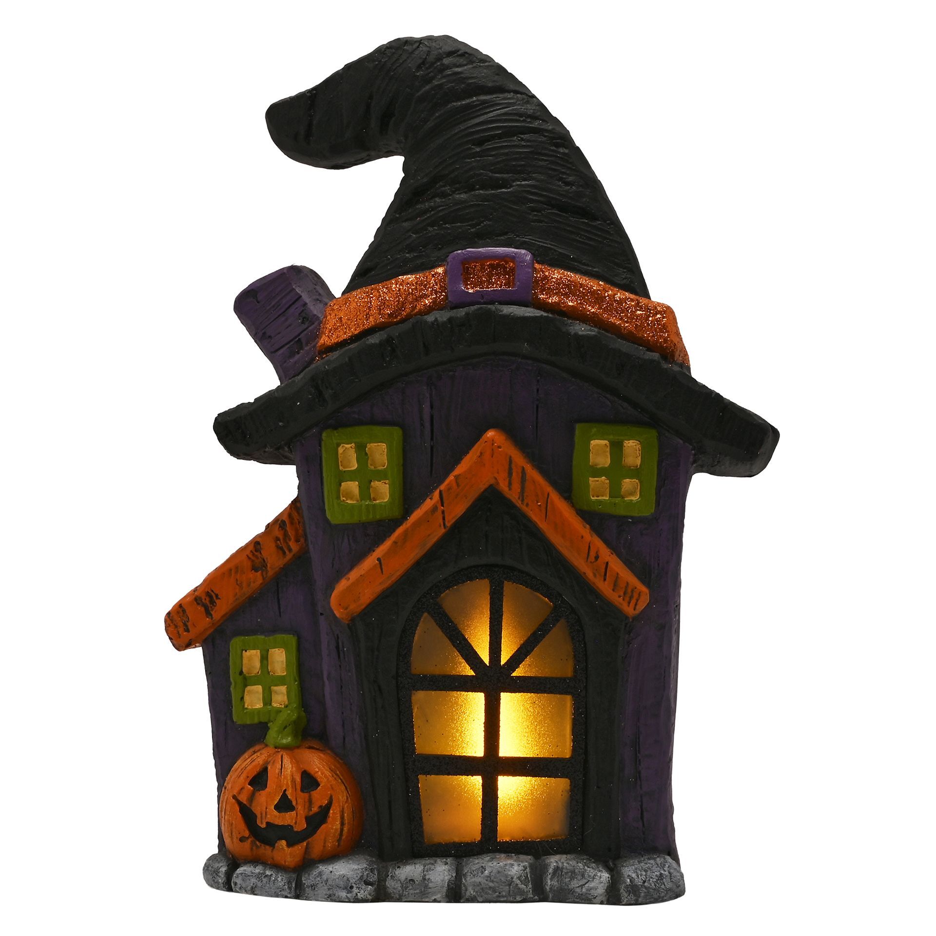 Bring a hint of eerie elegance to any setting with this haunted house design magnesia pumpkin with led flame (try me button), designed to enhance Halloween displays. Featuring carefully considered design elements, it stands out as a distinctive decorative piece. Perfect for adding personality to seasonal arrangements throughout the spooky season.