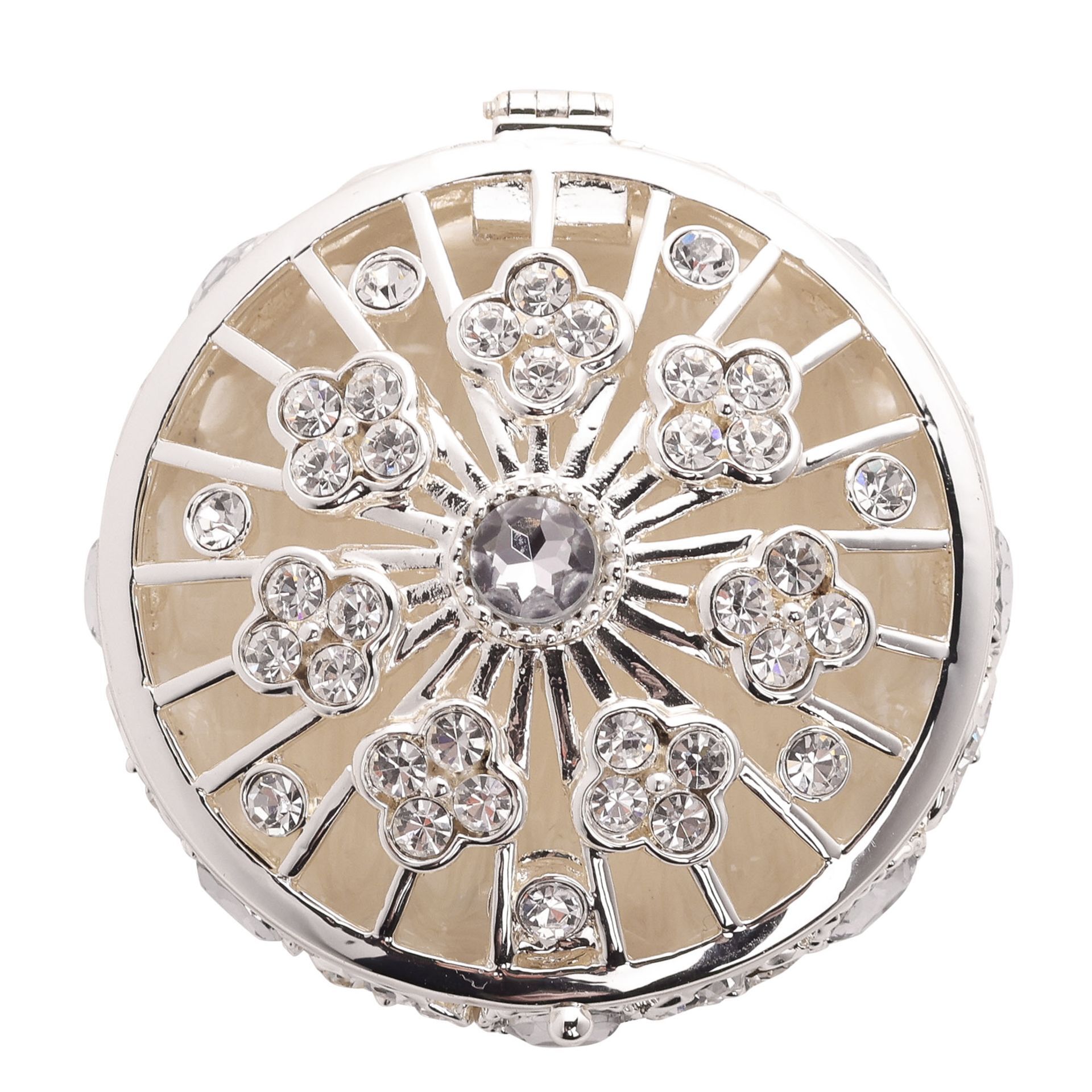 Introducing the Sophia Classic Open Work Trinket Box, a round and ornate piece that effortlessly captures elegance and charm. Dotted with twinkling crystals or diamonds, its intricate floral design sets the stage for a captivating display, making it the perfect keepsake or gift.