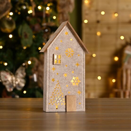 The Tall LED Light Up Felt Natural Colour House offers a tactile accent for seasonal interiors.